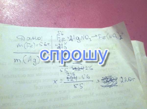 Вычислите массу серебра, которое образуется при взаимодействии 56 г. железа с нитратом серебра?
