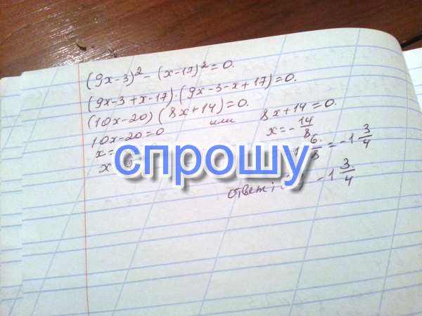 (9x-3)^2-(x-17)^2 = 0 помогите решить пожалуйста!
