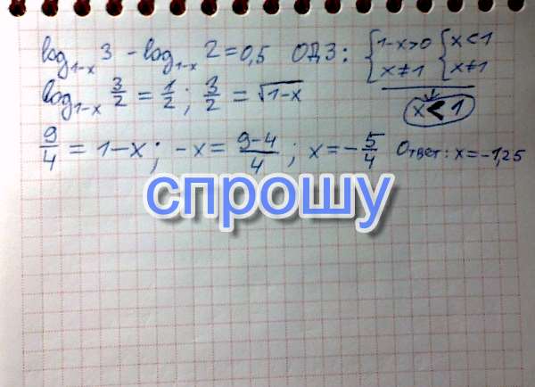 Log (1-x) 3-log(1-x) 2 = 0,5