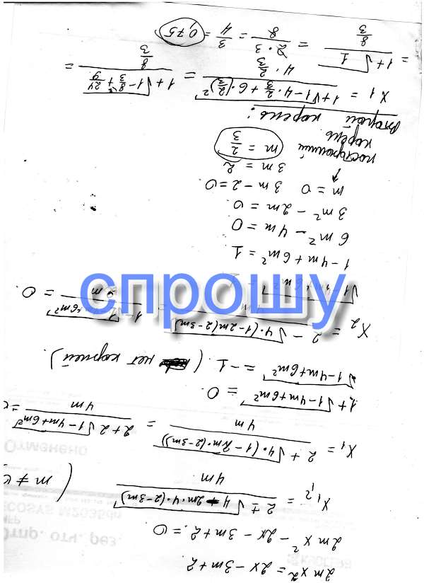 Для каких значений m уравнение 2mx^2 = 2x-3m+2 , имеет корни равные нулю ? Для найденных значений m , найдите второй корень этого уравнения.