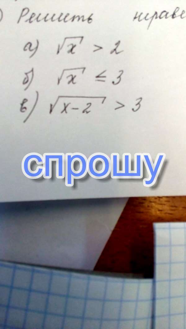 √хgt;2 ⇒ (√x)²gt;2² ⇒xgt;4