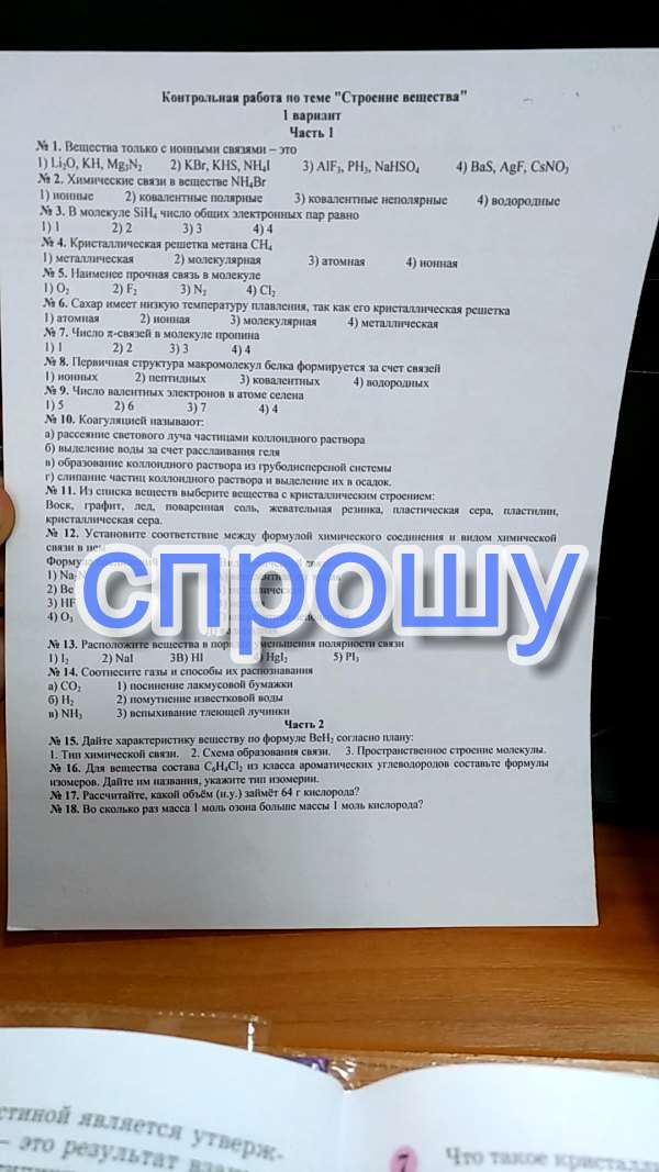 №11. графит, поваренная соль, кристаллическая сера (в этом вопросе могу ошибиться)