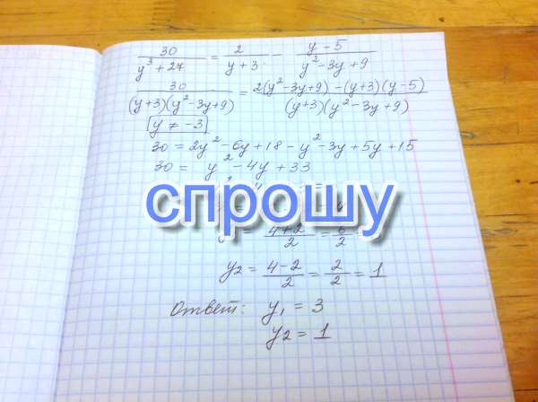 Помагите решить 30/y^3+27 = 2/y+3-y-5/y^2-3y+9