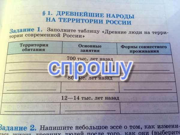 Помогите пожалуйста!!! История 6 класс. Заполните таблицу " Древние люди на территории современной России "