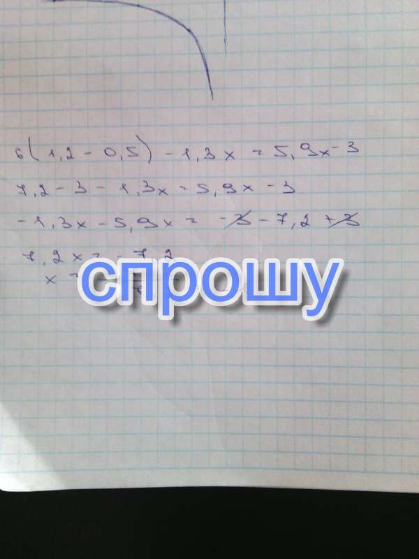 Решите уравнение 6(1,2 - 0,5) - 1,3х = 5,9х - 3