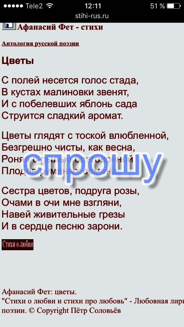 Помогите Срочно!!!!!!! Нужен анализ стихотворения Фета "Цветы"