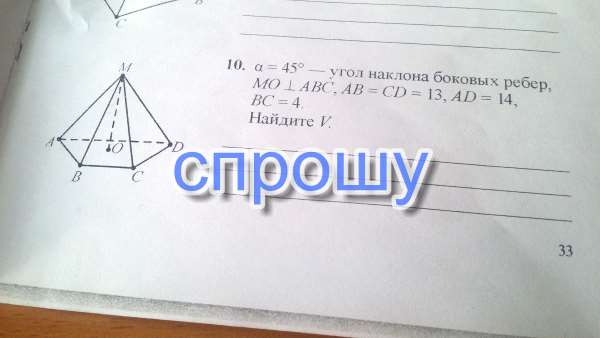 Так как боковые рёбра пирамиды одинаково наклонены к плоскости основания, то основание О высоты МО лежит в центре описанной около основания пирамиды окружности. АО=ВО=СО=ДО=R.