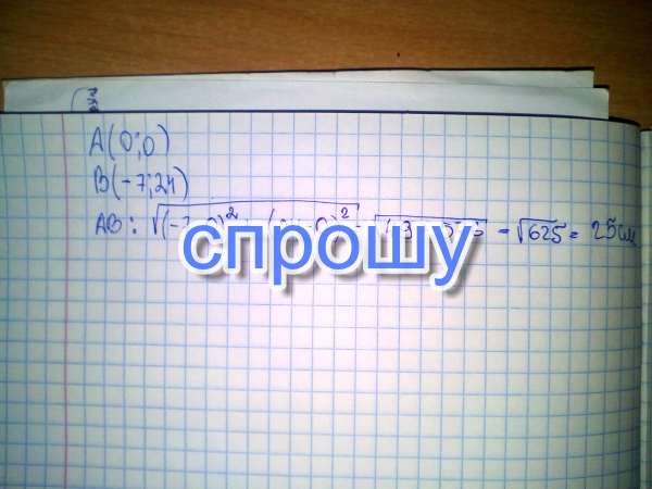 Найти длину отрезка ,один конец которого лежит в начале координат , а другим является точка В (-7;-24)