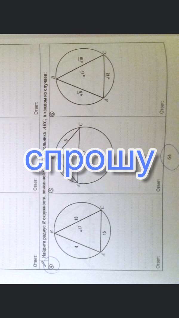 Найдите радиус R окружности описанной около треугольника АВС (4 задача)