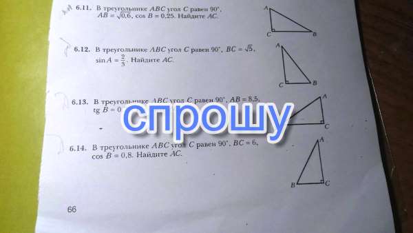 tgB=3/4 Представим 3 как AC(3 части) и 4 как BC. Т.к. треугольник египетский, AB составляет 5 частей.