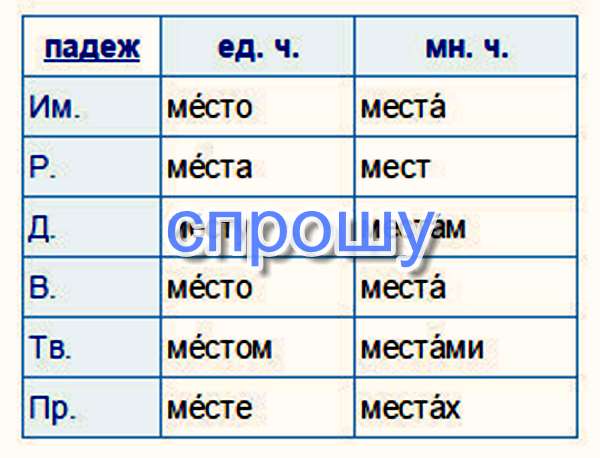 Правильное склонение слова "место" наглядно выглядит на этой схеме: