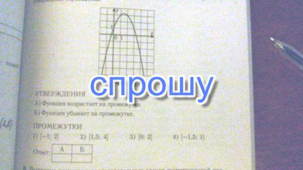 На рисунке изображена функция вида y = ax^2+bx+c. Установите соответствие между утверждениями и промежутками,на которых эти утверждения справедливы