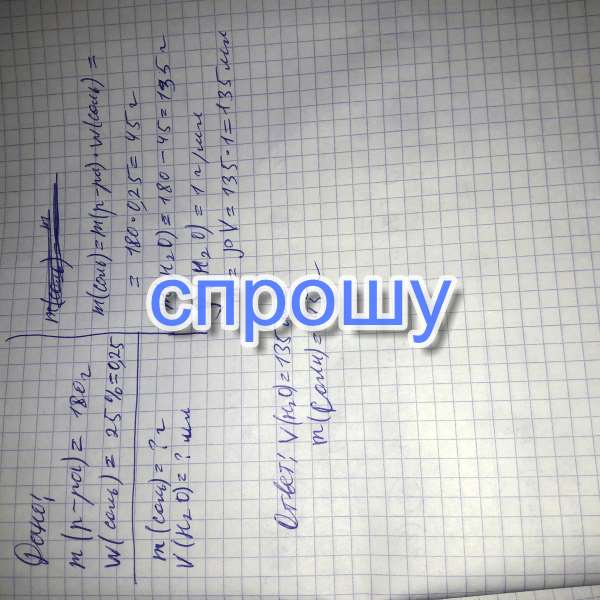 Ответ: V(H2O)=17.23дм3, m(NaCl)=45г.