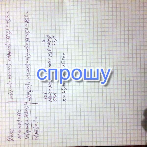 При нагревании 76 грамм технического хлорида аммония, массовая доля примеси в котором 20% с гидроксидом натрия выделился аммиак. Найти объём аммиака. (ответ запишите с точностью до десятых)