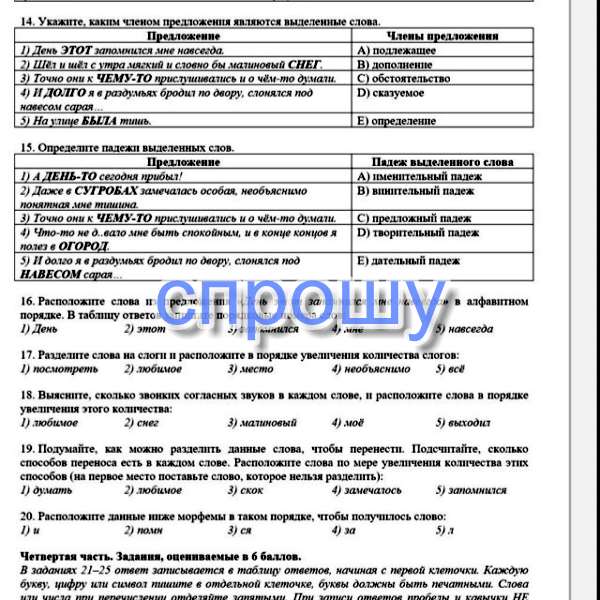 Помогите по олимпиаде русскому языку!!!!!!5 класс!!!Даю 15 балов !!!!пожалуйста помогите !!!!С 14 по 19!!!!20 я сделала! Помогите мне пожалуйста