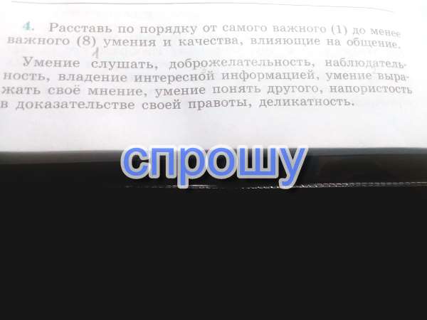 Расставь по порядку от самого важного 1 до менее важного 8 умения и качества ,влияющие на общение.