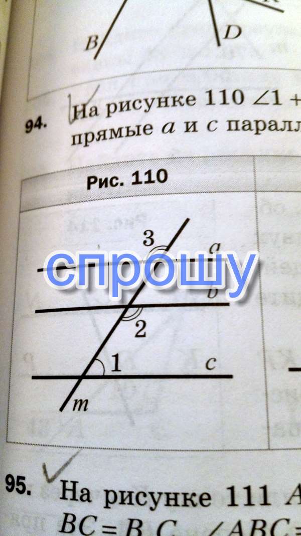 На рисунке 110 угол 1 + угол 2 = 180°, угол 2 = углу 3. Докажите, что прямые a и c параллельны
