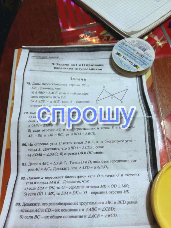 a) Смотри там DA=AE BA=AC lt;BAD=lt;CAE тк они вертикальные.