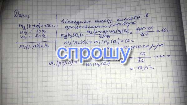 Решить задачу:какую массу (г) 80%-го раствора серной кислоты нужно взять для приготовления 100г 10%-го раствора кислоты?