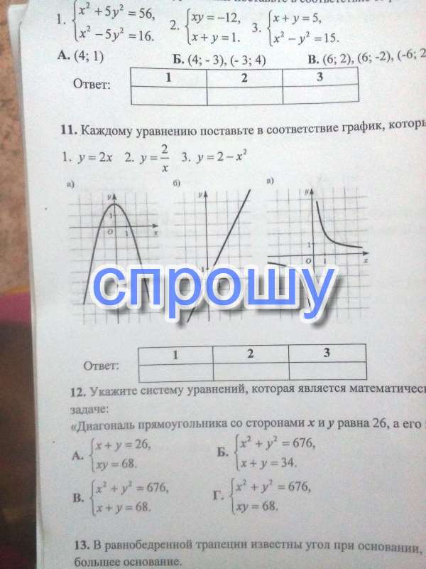Каждому уравнению поставьте в соответствие график, который задаётся этим уравнением: