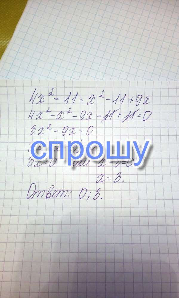 4х квадрат- 11 = х квадрат -11 + 9 х СРОЧНОООООО ПОМОГИТЕ