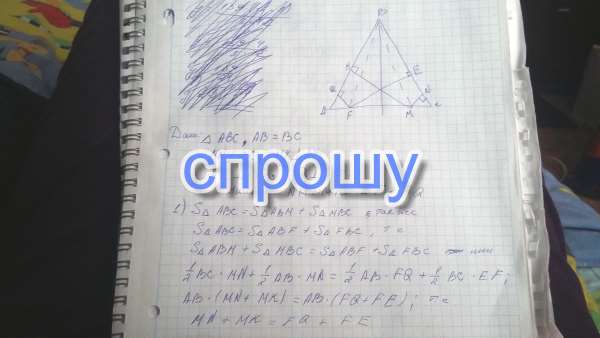 Докажите что сумма расстояний от точки на основании равнобедреного треугольника до боковых сторон не зависит от положения этой точки