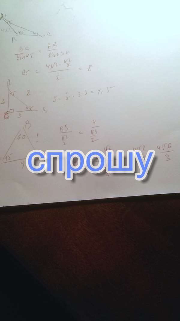 В треугольнике АВС угол АВС = 60 градусов,угол ВАС = 45 градусов,АС = 4.Найдите ВС