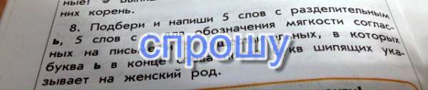 5слов с разделительным ь: вьюга,соловьи,вьюнок,ладья,сыновья. 5слов с смягчением согласных: сельдь,конь,лось,олень,тюлень. 5слов с показателем грамматической формы слова: рожь,речь,печь,ночь,брошь.