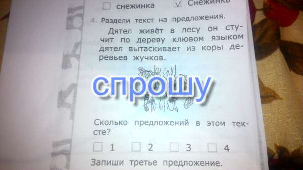 Дятел живёт в лесу.Он стучит по дереву клювом.Языком дятел вытаскивает из коры деревьев жучков.