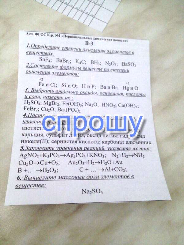 Sn(+4)F(-1)4; Ba(+2)Br(-1)2, K(+1)4C(-4), B(-3)H(+1)3, N(+3)2O(-2)3, Ba(+2)S(+6)O(-2)4