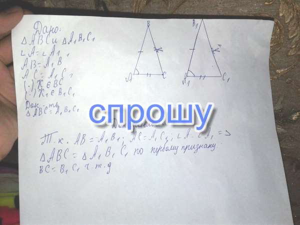 Известно, что в треугольниках ABC и A1B1C1, Угол А = А1; AB = A1B1; AC = A1C1, на сторонах BC и B1C1 отмечены точки K и K1, такие что CK = C1K1. Докажите, что треугольник ABK = A1B1C1 , желательно с рисунком!