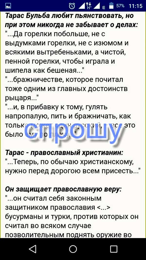 ЦИТАТНАЯ ХАРАКТЕРИСТИКА Тараса Бульбы
