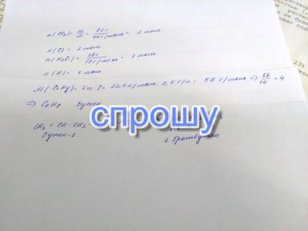 При сжигании 28 г газообразного органического вещества выделилось 88 г углекислого газа и 36 г воды. Плотность вещества 2,5 г/л.. В ходе ислледования химических свойств этого вещества установлено, что при его взаимодействии с бромоводородом преимущественно образуется вторичное галогенпроизводное.На основании данных условия задания: