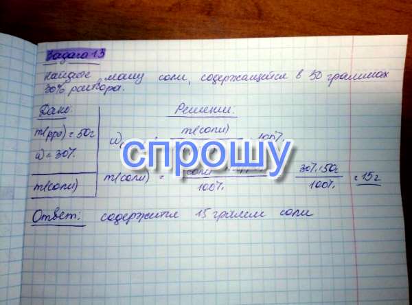 Найдите массу соли, содержащейся в 50 граммах 30%-ного раствора