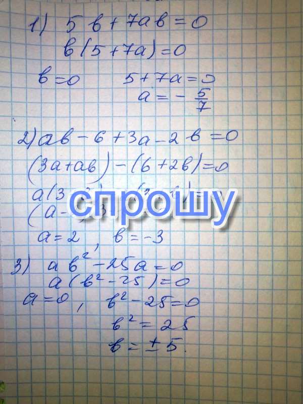 1) 5b+7ab ; 2) ab-6+3a-2b ; 3) ab2-25a