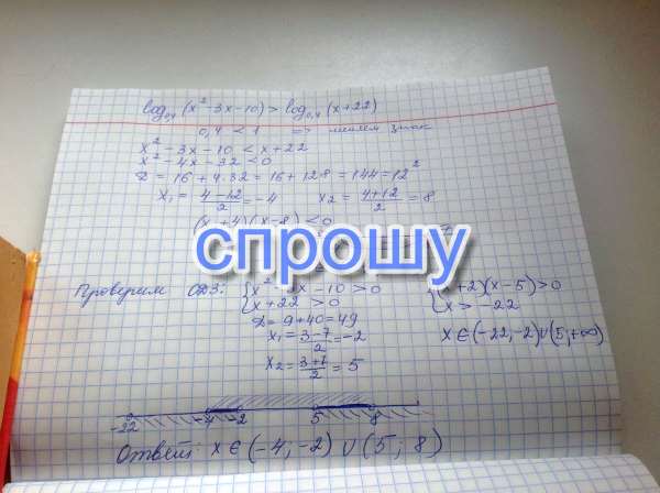В итоге ОДЗ: x∈(-22; -2)U(5; +∞)