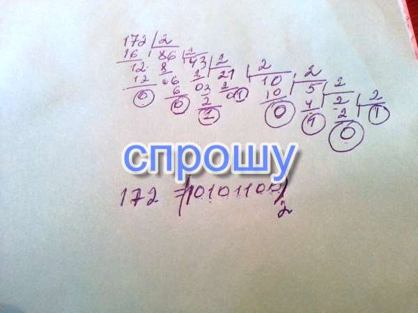 ПРЕДСТАВЬТЕ ЧИСЛО 172 В ДВОИЧНОМ КОДЕ! плс!! с вячеслениями там где делить чет надо!! ВЫБЕРУ ЛУЧШИЙ!