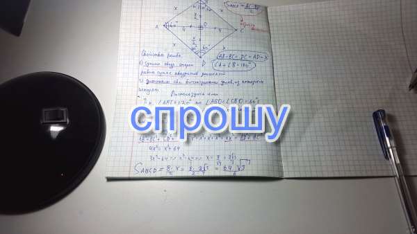 диагональ ромба лежащая напротив угла 120градусов равна 8.найти площадь ромба
