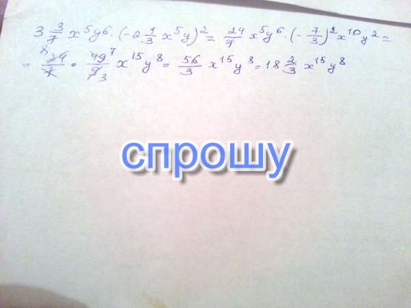 Упростите выражение 3 3/7 x^5 y^6*(-2 1/3 x^5y)^2