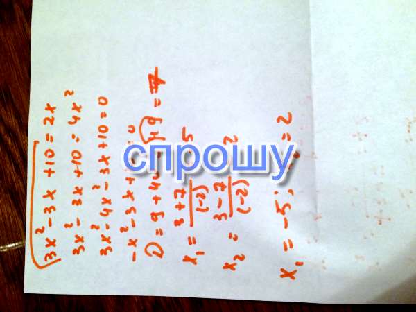 Корень 3х^2-3х+10 = 2х