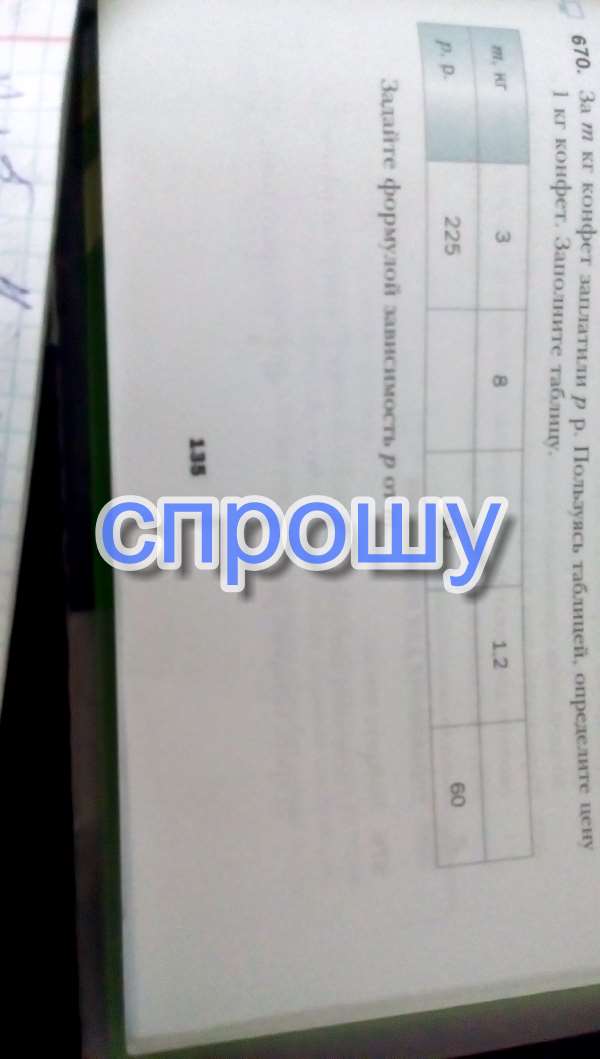 За m кг конфет заплатили p руб. Пользуясь таблицей Определите цену 1 кг конфет заполните таблицу