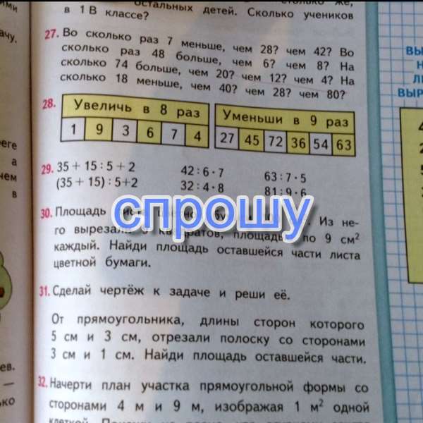 9*9=81, то есть чтобы найти площадь мы должны 100-81=19см^2