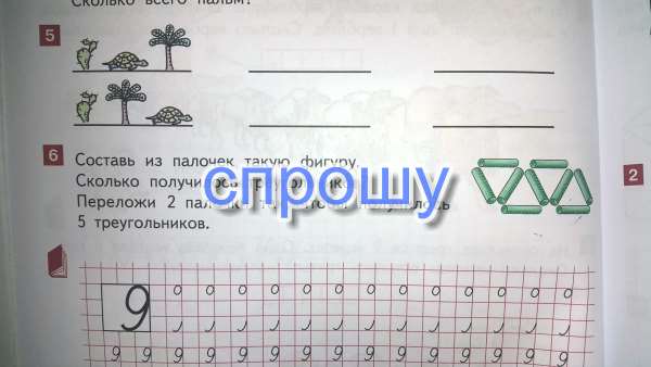 Здесь 4 треугольника. Чтобы было 5, надо 2 боковые палочки переложить в два треугольника, тогда получится 5 треугольников