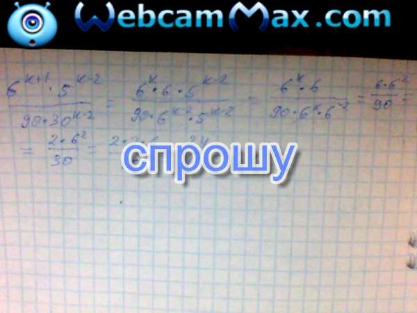Вычислите: (6^k+1 x 5^k-2)/(90x30^k-2)
