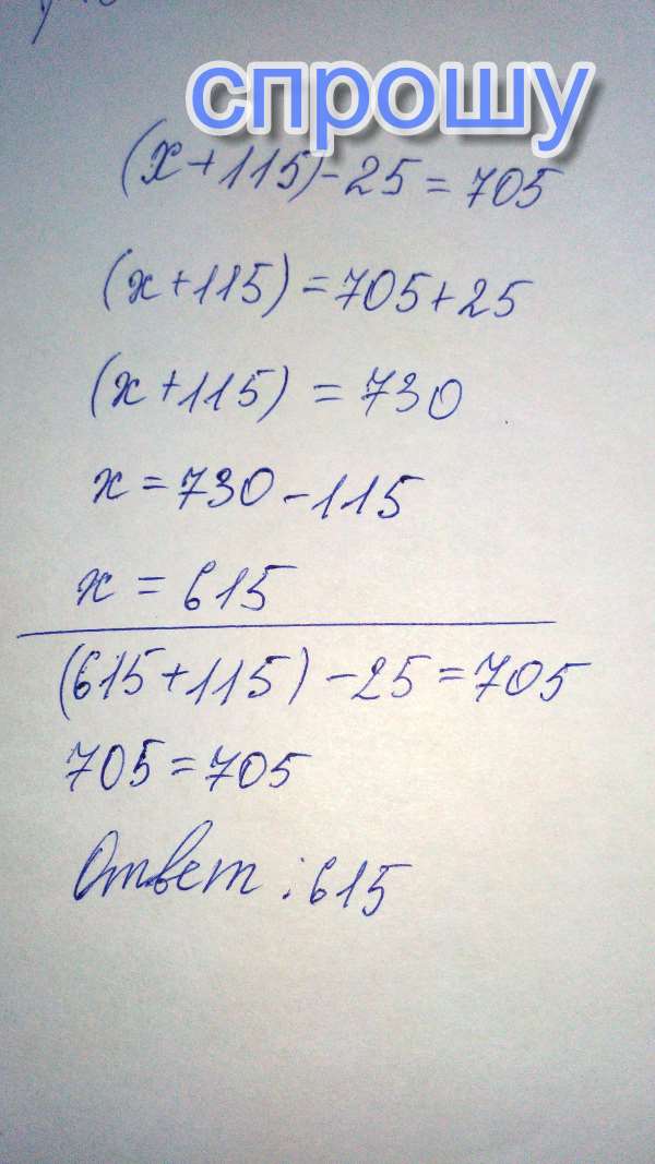 Решите уравнения:(х+115)-25 = 705;