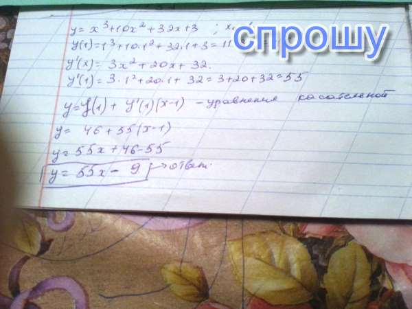 Найдите угловой коэффициент касательной, проведенной к графику функции x^3+10x^2+32x+3 в точке x0 = 1