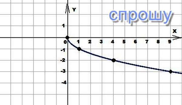 Y = минус корень из x . Как выглядит график? и какие там точки соединения?