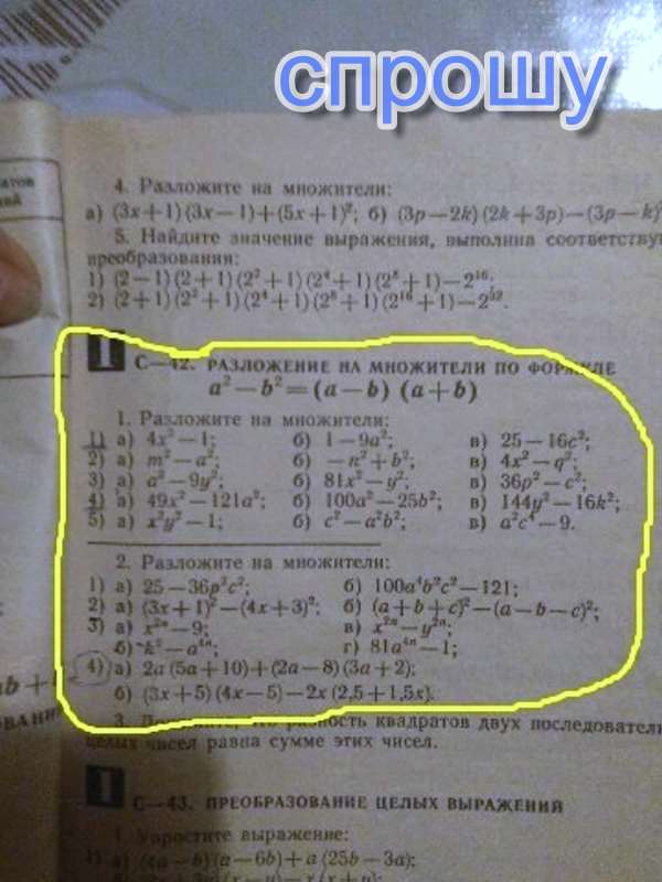 4) а)(7х-11а)(7х+11а) б)(10а-5б)(10а+5б) в)(12у-4к)(12у+4к)
