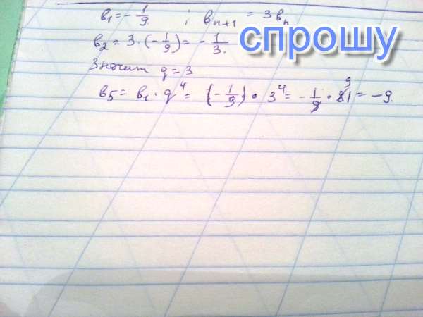 Геометрическая прогрессия задана условиями: b1 = -1/9; bn+1 = 3 bn. Найдите b5.