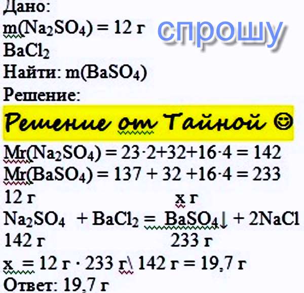К 12г. сульфата натрия добавили хлорид бария,вычислите массу полученного осадка
